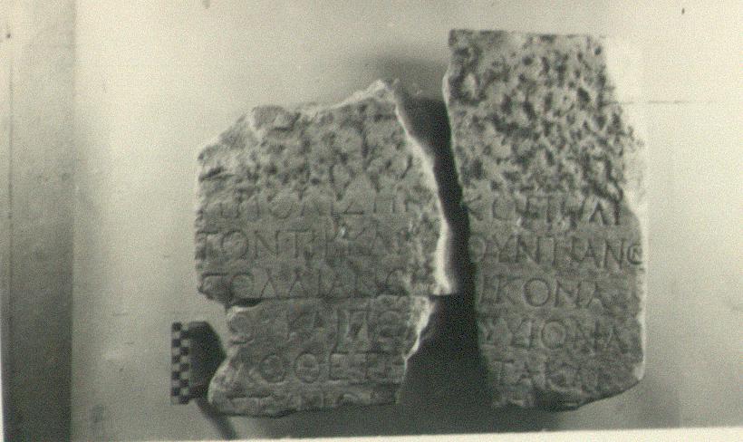 | Description: | Inscribed fragments. Honorary monument. Fragment Τ 53 a), is made up of two pieces; the left side preserved, with a late cutting in it. Surface rubbed. Fragment Τ 53 b), preserves the right side and the top. Six lines of the inscription preserved in each fragment. Pentelic marble. | |