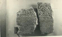 | Dimensions: | H. a) 0.432, b) 0.467; Lett. H. (of both fragments) 0.036; W. a) 0.358, b) 0.260; Th. a) 0.12, b) 0.12 | |