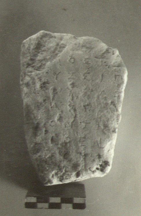 | Description: | Inscribed fragment. Inscribed face only preserved. Preamble of decree. Parts of fifteen letters remain. Pentelic marble. ADDENDA With I 3234. | |