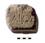 | Description: | Inscribed fragment. Fragment from top of statue base. On top, behind, part of rough cutting for statue. Broken away at both ends, below and behind. Seven letters remain. Pentelic marble. | |