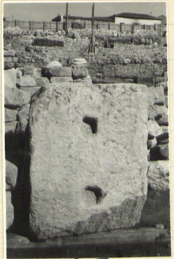 | Description: | Inscribed base. The block has clearly been re-used for there are two square dowel holes on the inscribed face. The right face has a recessed panel but no letters visible; a place where they might be expected. The left face has a moulding at bottom. The inscribed face is broken away at bottom edge so it is impossible to tell whether the moulding continued around it. The bottom has rough picked surface. Back and top have very rough partially broken surfaces; original top surface however cannot have been much higher than the preserved surface; for the lower parts of the two dowel cuttings are preserved. Dedication. Twelve letters at least. Hymettian marble. | |