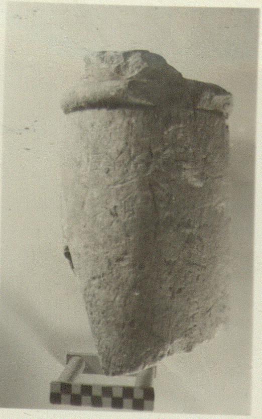 | Description: | Fragment of inscribed columnar grave monument. Piece of top surface preserved. Seven letters remain. Hymettian marble. | |