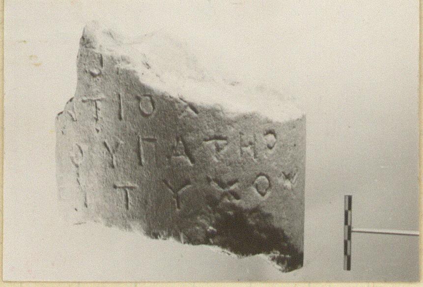 | Description: | Fragment of inscribed columnar grave monument. Inscribed face only preserved. Twenty-one letters remain. Hymettian marble. | |