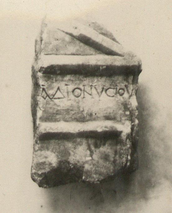 | Context: | Found in the modern wall of the house 646/6, over the area of the late Roman Water Mill. | |