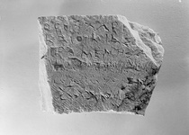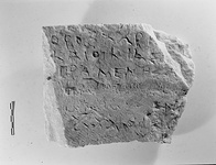 The inscribed face has a very rough uneven surface. The back is smooth finished. Top, bottom, left and right are broken surfaces, but stone probably in this condition when inscription written, except for surface break at upper right corner.