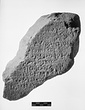 Description:   Upper right corner of inscribed plain-topped stele.