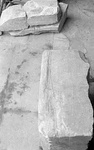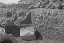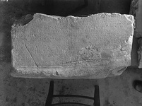 The stone is complete except for the edges around the top surface, all of which have been broken away. In the center of the top surface a rough picked surface which is certainly the bottom of the cutting for a statue. There is a badly worked moulding on the front and two sides. The back is a joint surface, with a band of anathyrosis.