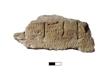 | Description: | Inscribed fragment. Inscribed face only preserved. Three letters remain. Pentelic marble. | |