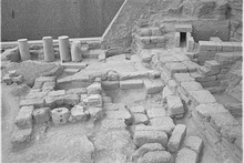 The bottom surface preserved, and probably the entire circumference. The dimensions given are approximate only, because the column has not been removed from the wall.