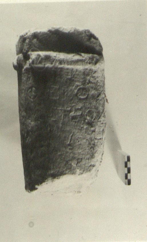| Description: | Inscribed fragment of columnar grave monument. Top and more than half of diameter of column preserved; broken at bottom. Three lines of the inscription preserved. Hymettian marble. | |