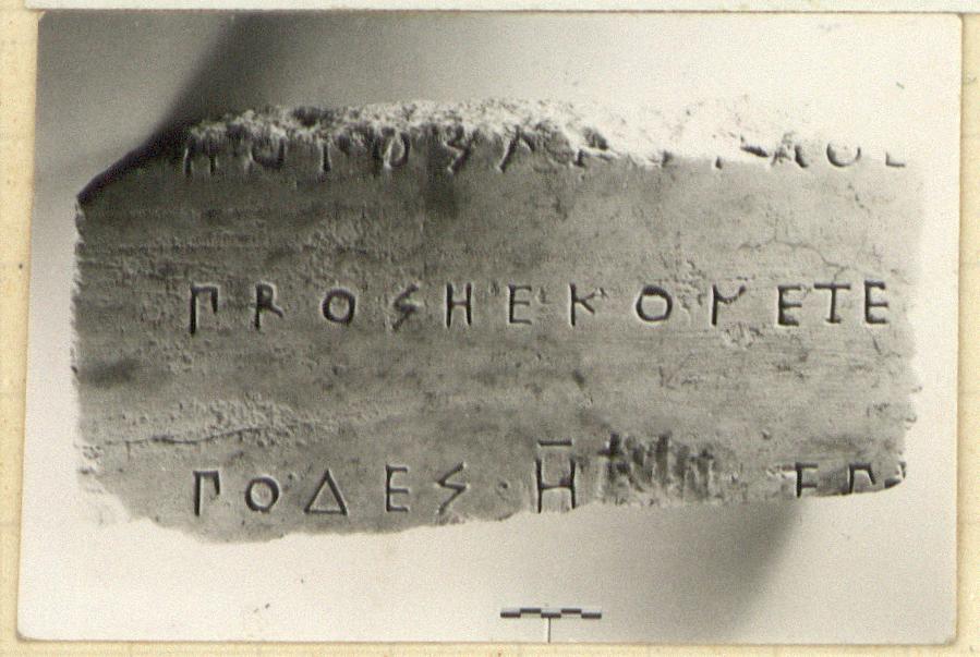 | Description: | Inscribed fragments. Property of Athena (?). Fragment ΝΝ 593 a), inscribed face, left face, and back preserved; broken at right, top, and bottom. The back surface is in two plains, the lower part rough picked, the upper polished, projecting. There is also a narrow projecting band along the front edge of the left face. Attic alphabet, archaistic. Three lines of the inscription preserved. Fragment Υ 24 b), smoothed back preserved; otherwise broken. Two lines of the inscription preserved. Pentelic marble. | |
