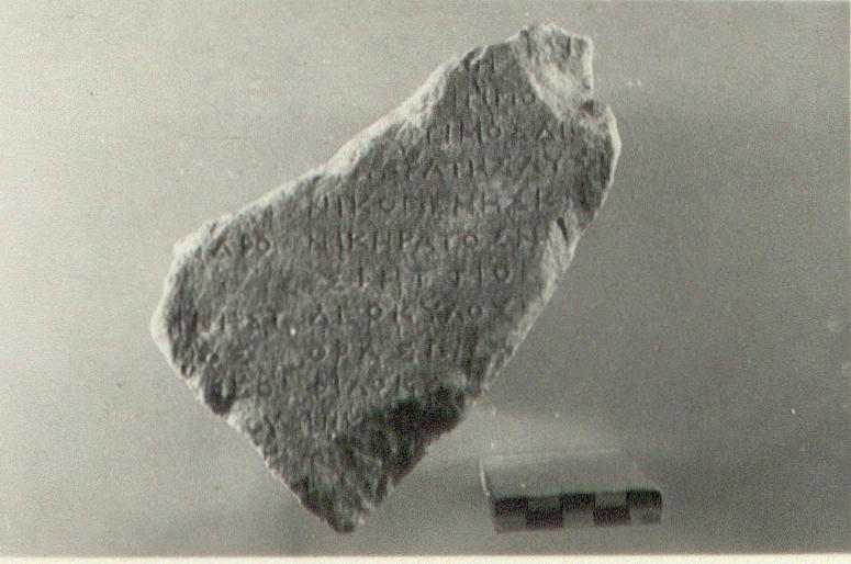 | Description: | Inscribed fragment. Perhaps preserved nearly to full thickness; otherwise broken. Twelve lines of the inscription preserved. Hymettian marble. | |