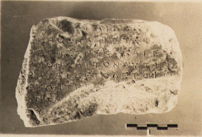 | Context: | Found in modern wall, on the north slope of the Areopagus. | |