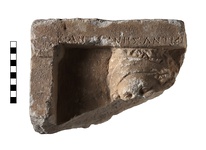 Description:   Inscribed fragment of grave relief.