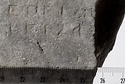 | Dimensions: | H. a) 0.336, b) 0.236; Lett. H. (of both fragments) 0.004; W. a) 0.155, b) 0.201; Th. a) 0.077, b) 0.065 | |