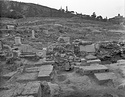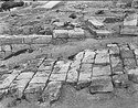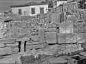 The slab is set into a poros base which in turns is set on bedrock; stele in original place, simply incorporated in face of Valereian wall without moving.