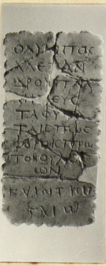 | Description: | Inscribed fragment. Mended from many pieces. A rectangular plaque dressed smooth behind, its edges bordered by a straight incised line and by the edges of a series of drill holes. The plaque may originally have had a border outside these drill holes. Containing the offer of first fruits of Olympos of Paiania to the Phosphorae. Eleven (?) lines of the inscription preserved. Island marble. | |