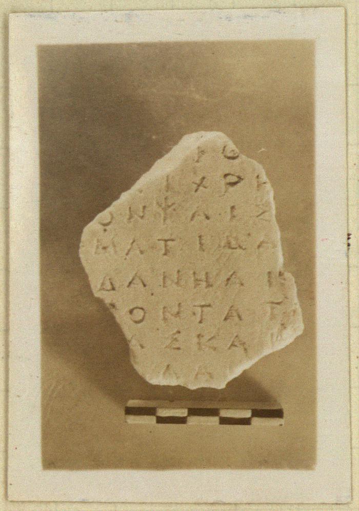 | Description: | Inscribed fragment. Inscribed face only preserved. Eight lines of the inscription preserved; stoichedon. Pentelic marble. ADDENDA Belongs to I 4695. Taken to the Epigraphical Museum on 10th. December 1954; returned on 10th. January 1955. | |
