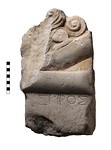 Pedimental top, the left akroterion of which is a reclining winged griffin or spinx.