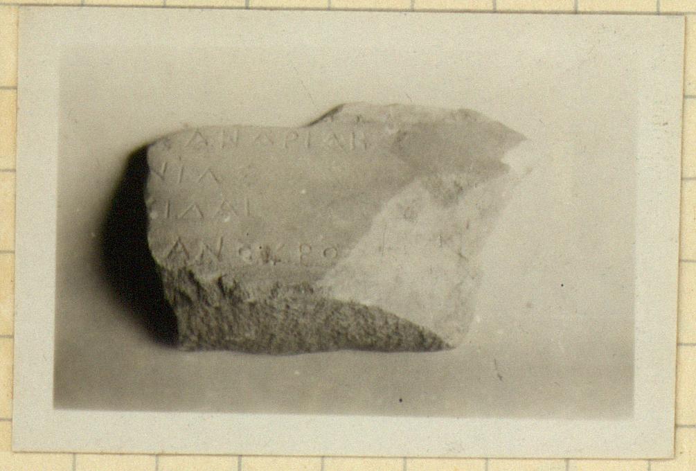 | Description: | Inscribed fragments. Fragment Ζ 101 a), broken at top, sides and back. Bottom surface picked smooth. At the upper edge of the fragment the start of a fascia or moulding. Remains of four lines of the inscription preserved. Fragment Β 257 b), part of the rough picked bottom preserved. Otherwise broken. Two lines of the inscription preserved. Pentelic marble. ADDENDA I 969 belongs. | |