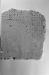 Broken off at top and right side; original stele cut down on left side and bottom and reused. The back is smooth picked.