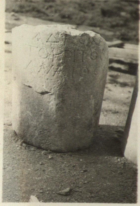 | Description: | Inscribed fragment of columnar grave monument. Bottom preserved; broken off at top and later hollowed out for reuse. Three lines of the inscription preserved. Hymettian marble. | |
