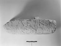 | Description: | Inscribed fragments. Fragment Ψ 3 a), inscribed face and bottom surface only preserved. One line of the inscription preserved. Fragment Ψ b), remains of two letters. Pentelic marble. | |