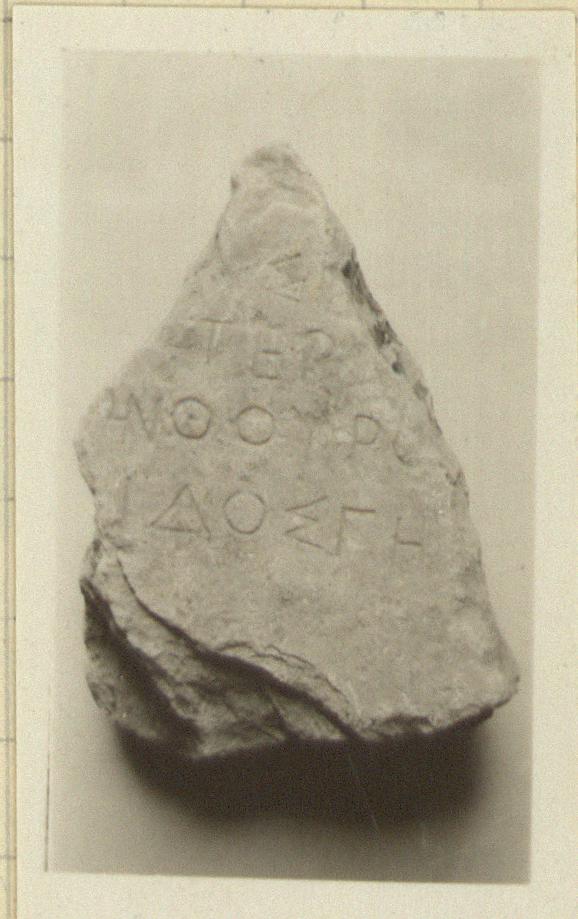 | Description: | Fragment of inscribed grave stele. The edges broken but the back, rough picked, preserved. Parts of four lines of the inscription preserved. Hymettian marble. | |