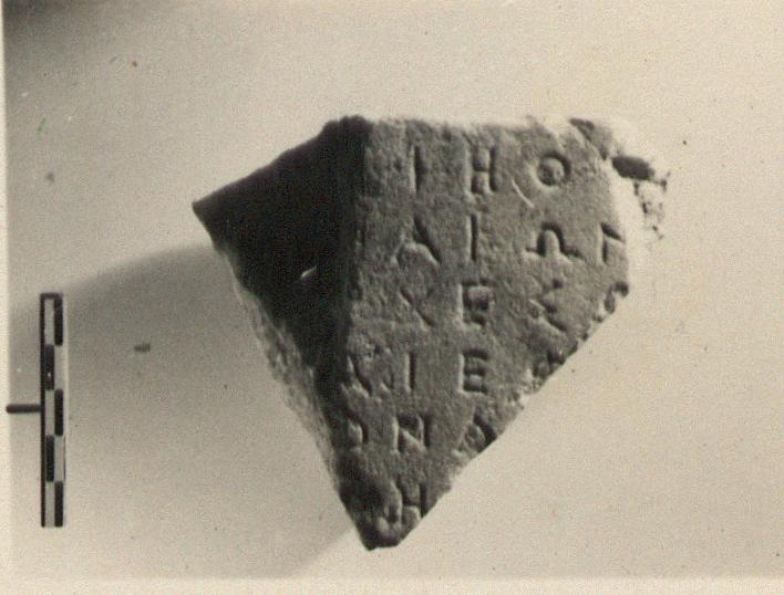 | Description: | Inscribed fragment. Inscribed face only preserved. Six lines of the inscription preserved. The marble has been burned. Pentelic marble. ADDENDA Joins I 5254. | |