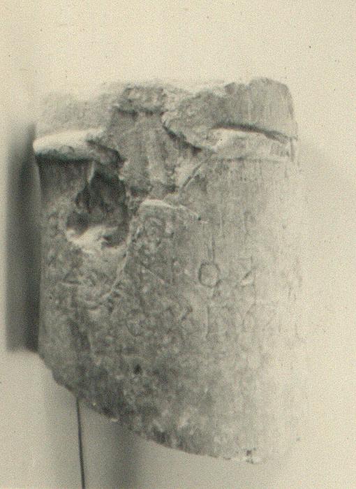 | Description: | Inscribed fragment of columnar grave monument. About half of top preserved; elsewhere broken. Surface badly worn and chipped. Three lines of the inscription preserved. Hymettian marble. | |