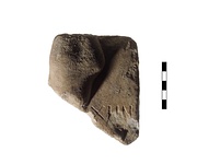| Description: | Inscribed fragment. Inscribed face, right side, probably back preserved; possibly also the top, for this seems to be a votive plaque representing a human leg, of which the hip and thigh are preserved. Three letters preserved, inscribed at the right. Pentelic marble. | |