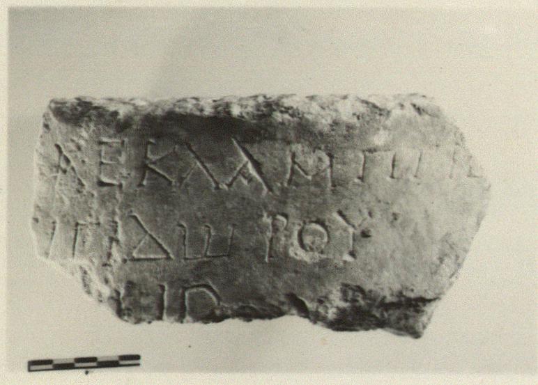 | Description: | Inscribed fragment of columnar grave monument. Rough picked top and part of inscribed surface preserved. Two lines of the inscription preserved, and a part of a third below. Hymettian marble. | |