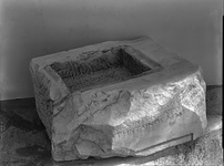 | Description: | Inscribed base. Left side hacked off and reworked, and face much chipped. A rectangular cutting, rough picked, inside top, its dimensions ca. 0.27X 0.222 X 0.065m. deep. Front and right faces smoothly dressed; back carefully picked, with narrow smooth dressed band at top. On front and right sides a shallow rebate along botton of stone. Dedication (?) to Demeter and Kore. Four lines of the inscription preserved. Pentelic marble. | |