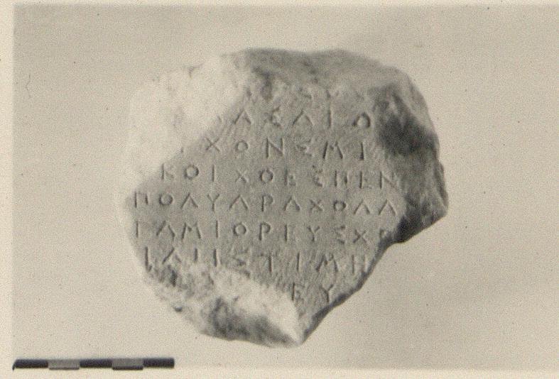 | Context: | Found in classical context below course 4 of west wall, in the Klepsydra antechamber. | |