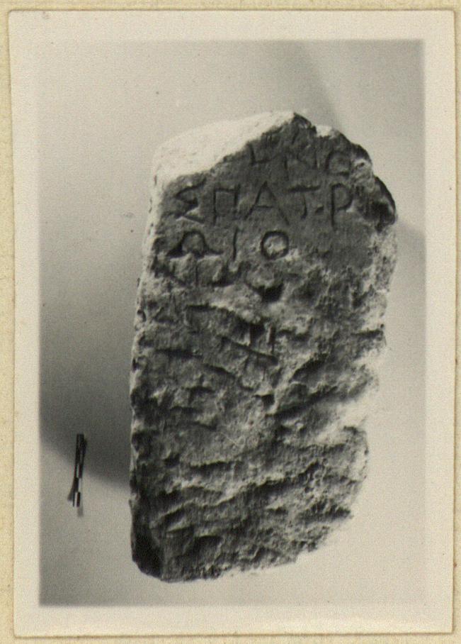 | Description: | Inscribed fragment. Back, bottom and sides are preserved. Boundary stone of Apollo Patroios. Three lines of the inscription preserved. Pentelic marble. | |