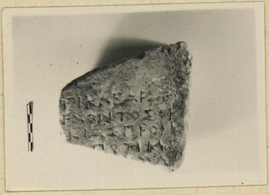 | Context: | Found in wall of the modern house 648/18 southeast of the Market Square, west of the Panathenaic Way. | |