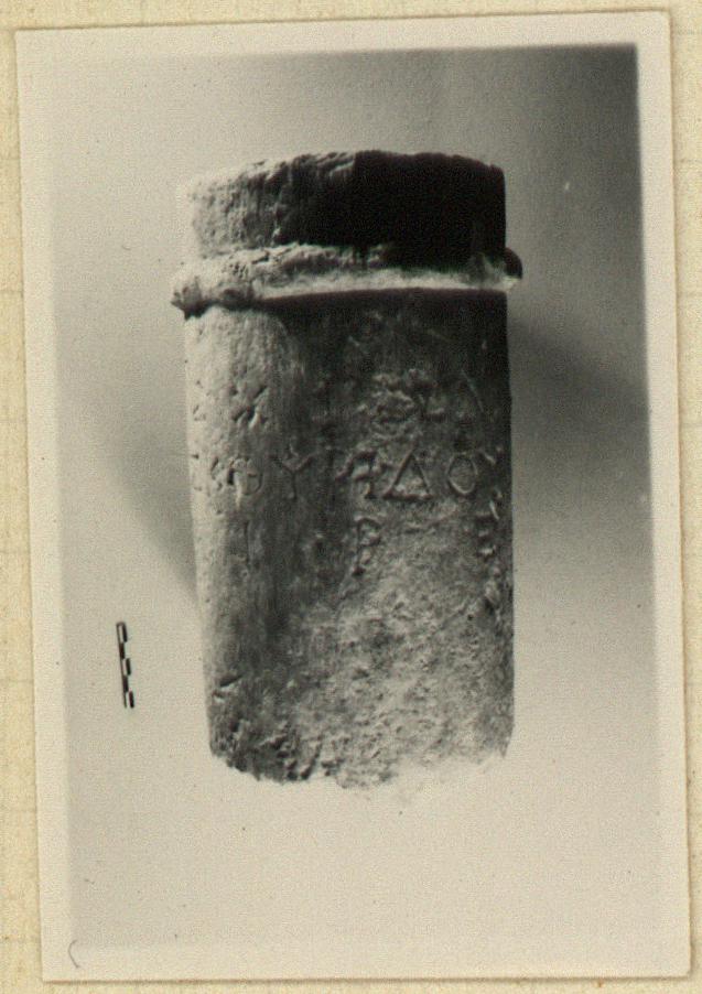 | Description: | Inscribed fragment of columnar grave monument. Top with moulding preserved. Three lines of the inscription preserved. Hymettian marble. | |