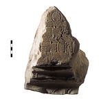 | Description: | Inscribed fragment. Bottom surface rough picked; top, sides and back are broken away. From the crowning member of a monument, with elaborate mouldings below inscribed face. Three lines of the inscription preserved. Pentelic marble. | |