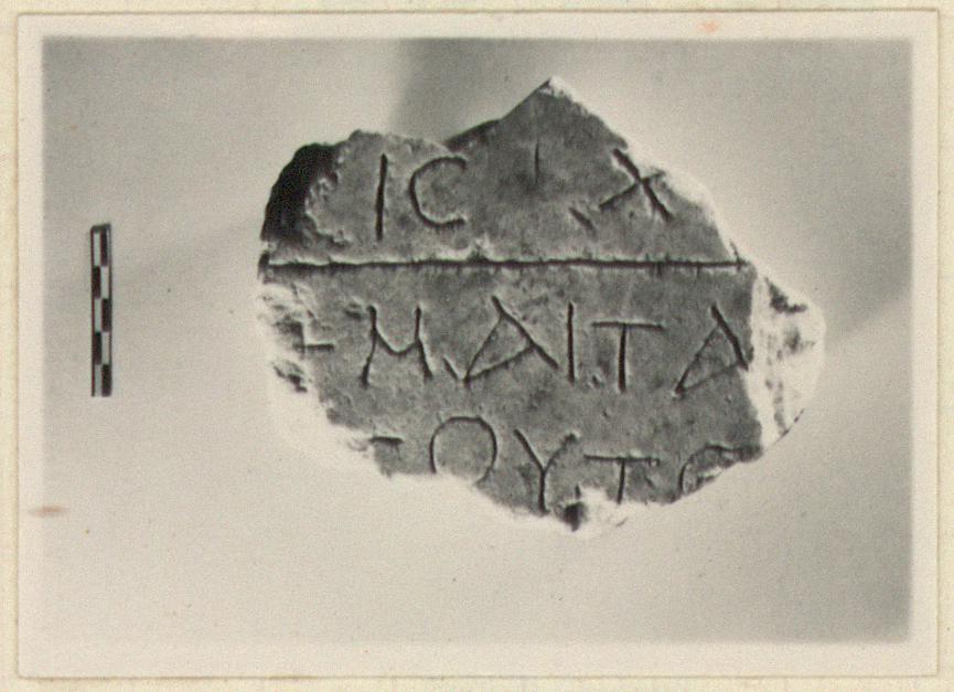 | Description: | Inscribed fragment of early Christian epitaph. Back preserved, smooth. Three lines of the inscription preserved. Hymettian marble. | |