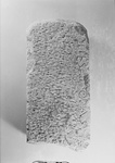 | Description: | Inscribed fragment of Horos stone; boundary stone of the Agora. Smooth picked except for a band on the face. Top much worn. Inscribed along top (missing) and side. Pentelic marble. ADDENDA Same style as I 5510. Cf. Hesperia Suppl. 5 (1941), p. 5, fig. 1 (grave 33). | |