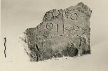 | Context: | Found in wall of the modern house 648/18 west of the Panathenaic Way, southwest of the Eleusinion. | |