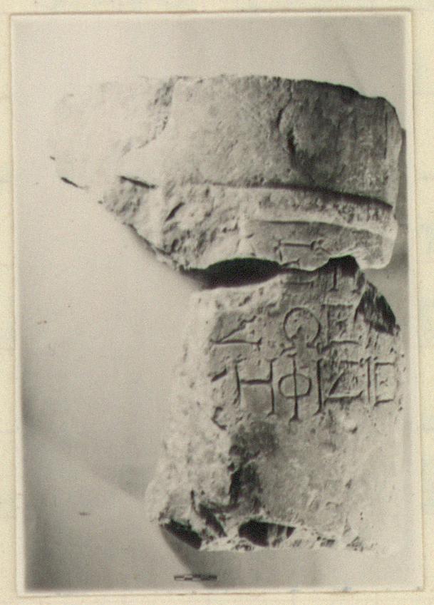 | Description: | Inscribed fragment of columnar grave monument. Two joining fragments of a large grave stone. Part of inscribed surface and top preserved. Three lines of the inscription preserved. Hymettian marble. | |