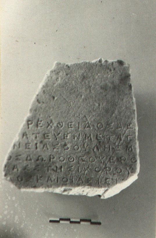 | Description: | Inscribed fragment. Inscribed face only preserved. Six lines of the inscription preserved. Hymettian marble. ADDENDA With I 6676. | |