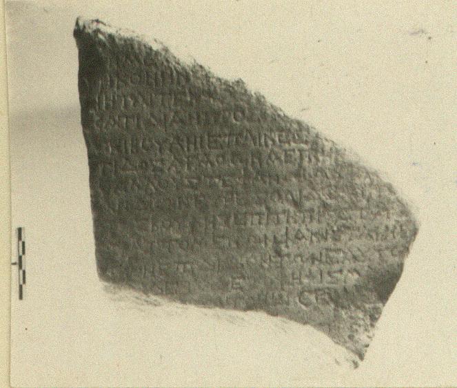 | Description: | Inscribed fragment. Left edge preserved. Back rough picked. Broken above, below and at right. Pentelic marble. | |