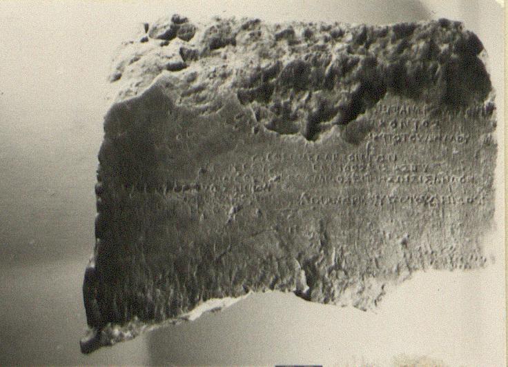 | Description: | Inscribed fragment. Right side and bottom, with part of tongue for setting preserved, and perhaps the rough picked back; otherwise broken. Concerned with religious procedure. Nine lines of the inscription preserved. Hymettian marble. | |