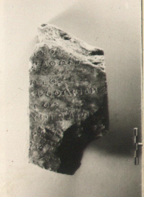 | Context: | Found in one of the Byzantine walls of the Houses A or B, south of the west end of the temple of Ares. Found after stones were put into filling of temple of Ares. | |