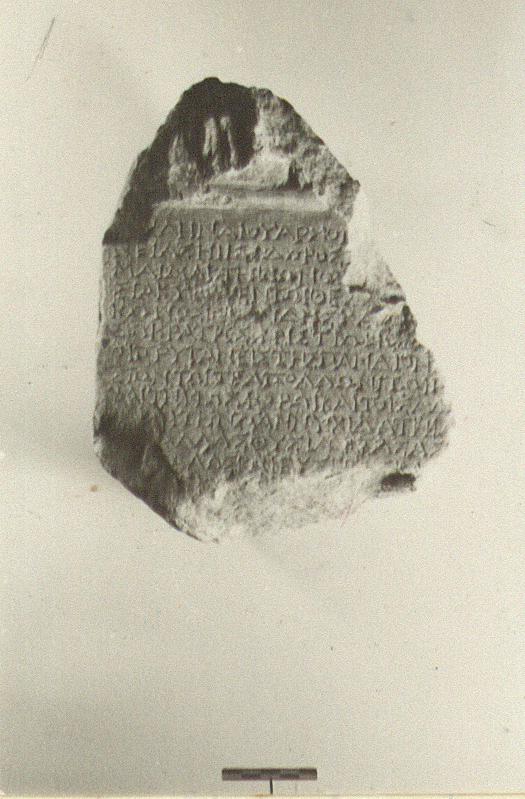 Parts of twelve lines of the inscription preserved.