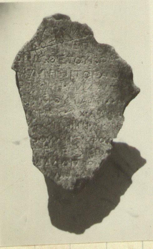 | Description: | Fragment of inscription. Broken on all sides. Thirteen lines of the inscription preserved. Dark blue Hymettian marble. ADDENDA Part of two other fragments I 189, and I 94. | |