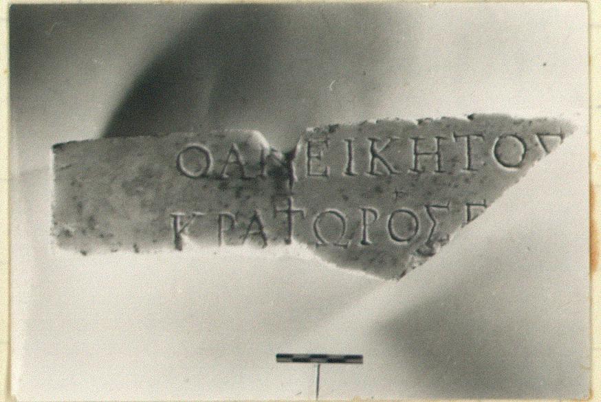 | Description: | Inscribed fragments of an inscribed plaque or revetment with smooth back. Fragment Τ 1389 a), broken all around. Joins I 5739 at left. Fragment Τ 1419 b), top with cyma reversa moulding. The moulding is so placed as to suggest that the inscribed surface was originally the top of the slab, the "back" the bottom. Fragment Τ 1441 c), broken all around. Fragment Τ 1447 d), the back and the inscribed face preserved, with the ends of three lines of the inscription. Pentelic marble. | |