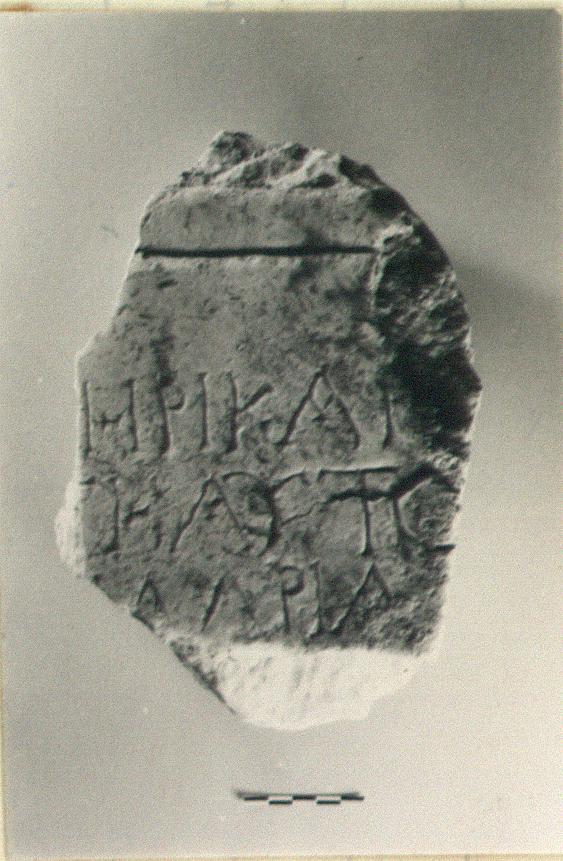 | Description: | Inscribed fragment. Broken all around. Moulding above. Dedication to Hadrian. Parts of three lines of the inscription preserved. Pentelic marble. | |